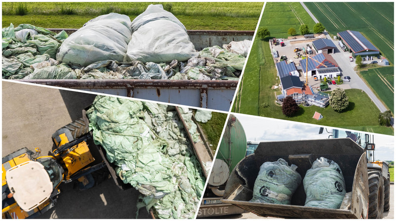 Zu den Sammelstellen der Lohnunternehmen oder anderen Sammelpartnern bringen die Landwirte ihre gebrauchten Folien und Netze. Wichtig ist dabei die sortenreine Trennung – Silofolie zu Silofolie, Stretchfolie zu Stretchfolie, Netze zu Netzen. Vor Ort wird das Material angenommen, gebündelt und für den Weitertransport vorbereitet. Für die landwirtschaftlichen Betriebe bedeutet das eine klare Struktur: unkomplizierte kostengünstige Abgabemöglichkeit, transparente Abläufe und ein gutes Gefühl durch den Beitrag zu einer nachhaltigen Landwirtschaft.