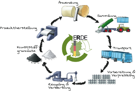 Jährlich kommen in der deutschen Landwirtschaft mehrere 10.000 Tonnen verschiedener Kunststoffprodukte zum Einsatz – und werden danach zu Abfall. Unser Ziel: Alle Folien, Garne und Netze zu sammeln und über die stoffliche Verwertung erfolgreich in den Wertstoffkreislauf zurückzuführen!