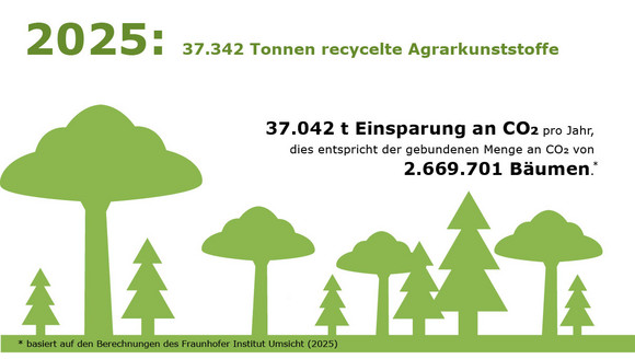 Die Landwirte profitieren als Verbraucher zusätzlich von deutlich geringeren Kosten bei der Abgabe ihrer Erntekunststoffe gegenüber alternativen Entsorgungsangeboten. Und: Sie erhalten Nachweise für die ordnungsgemäße Abgabe mit einem Ausweis der CO₂-Einsparung.